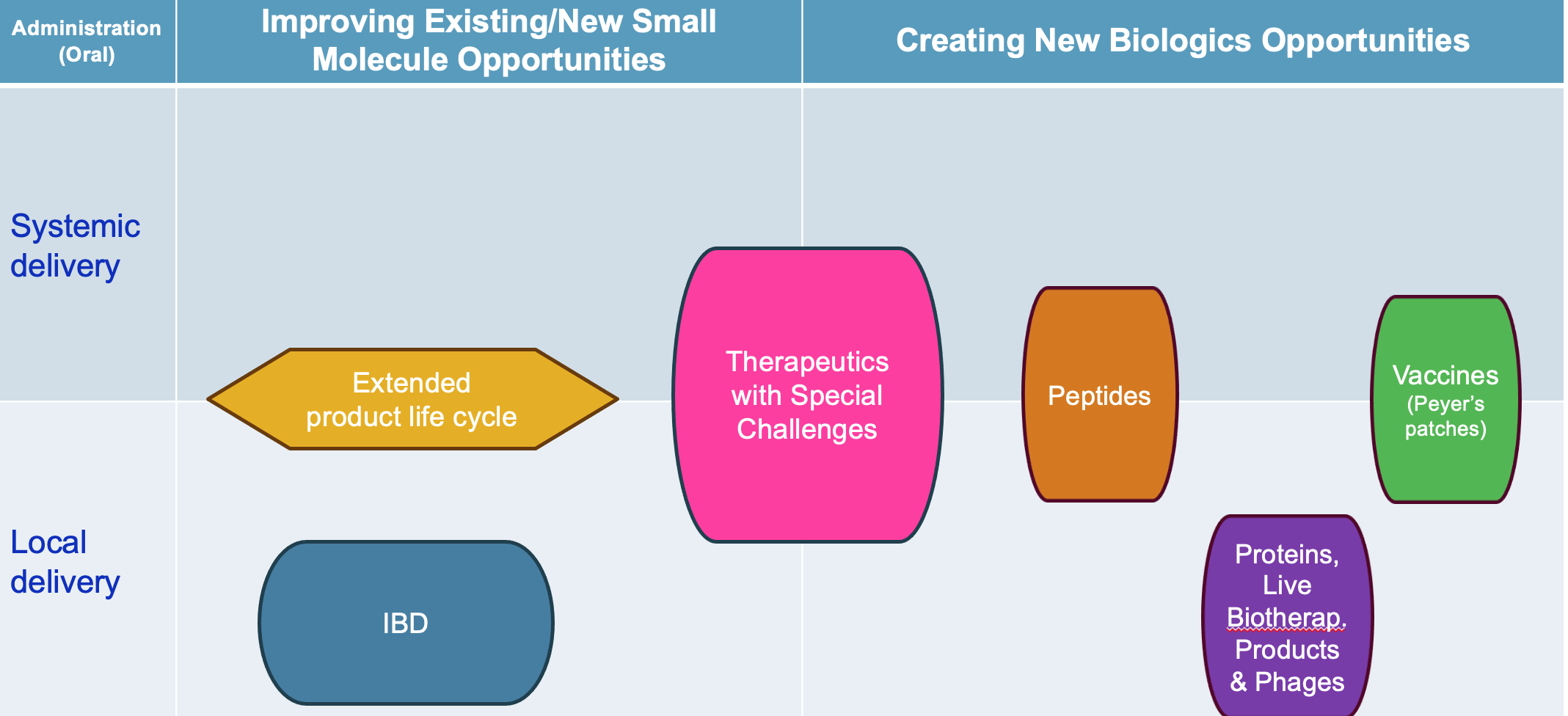 - This colon- or dual-targeted technology enhances therapeutic efficacy while minimizing side effects of small molecules, peptides, proteins, live biotherapeutic products (LBP), and vaccines through controlled-release formulations. GEMICEL overcomes limitations of conventional enteric coatings, facilitates the developability of new or revamping of failed drugs, is differentiated and provides access to an extended product life cycle management.