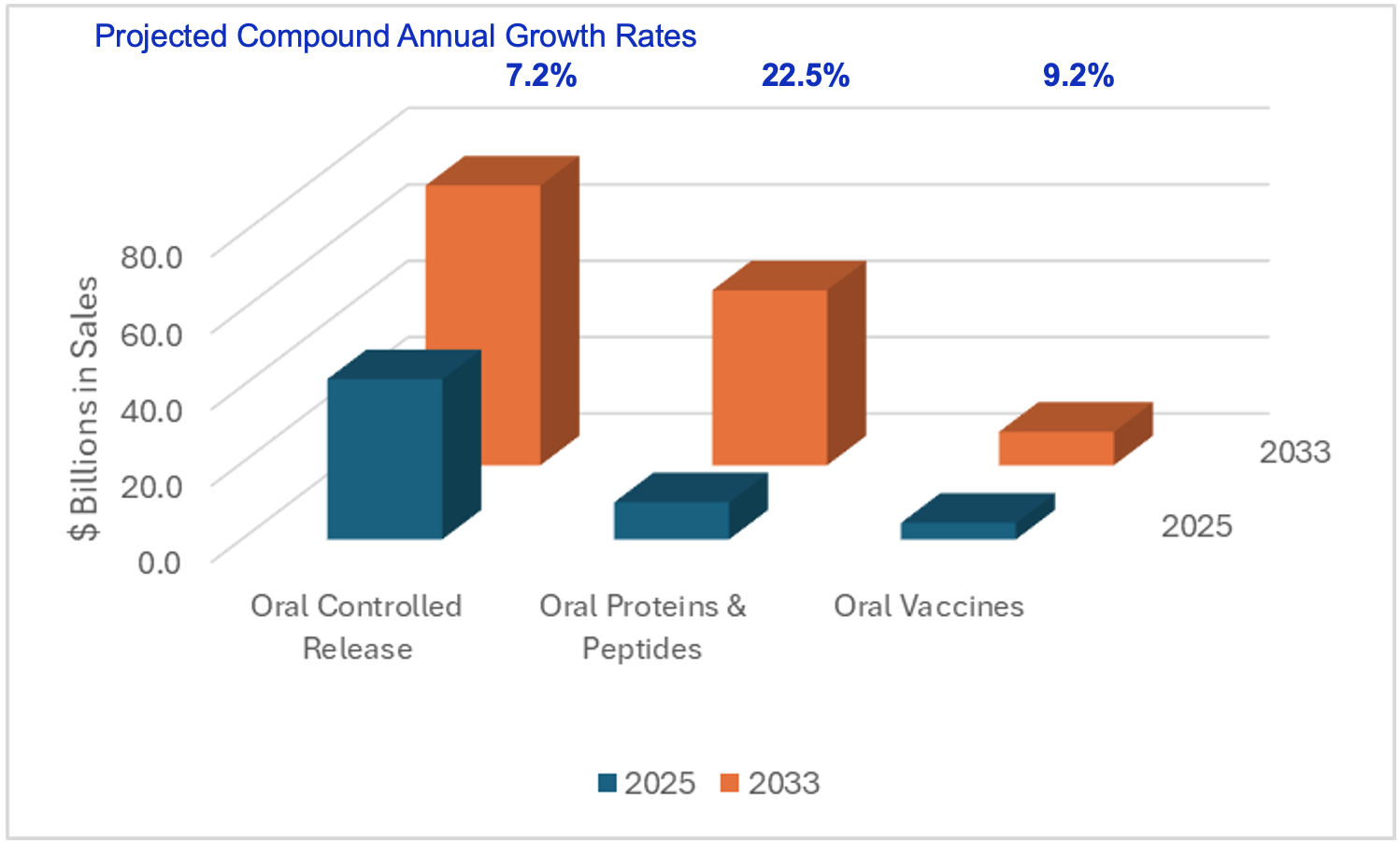 2025-33 Targeted Oral Delivery Market ($ Bns)