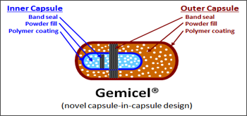 Targeted oral delivery technologies include conventional pH-sensitive enteric coatings, multi-matrix, osmotic-controlled and timed-release methods. Limitations include variable or off-target delivery, reduced potency, leakage from one site to another, lack of patent protection and manufacturing complexity, as well as high COGS. GEMICEL overcomes these challenges cost-effectively based on its single- or dual-targeted drug delivery platform. This patented delivery technology is based on dual polymer layers programmed to dissolve at specific pH and peristaltic pressure levels. GEMICEL in various oral forms delivers drugs and biologics to specific target locations in the GI tract. This technology is perfectly designed to target the microbiome with products which otherwise cannot achieve their intended effects. As an innovation it effectively addresses unmet medical needs across multiple-therapeutic areas.